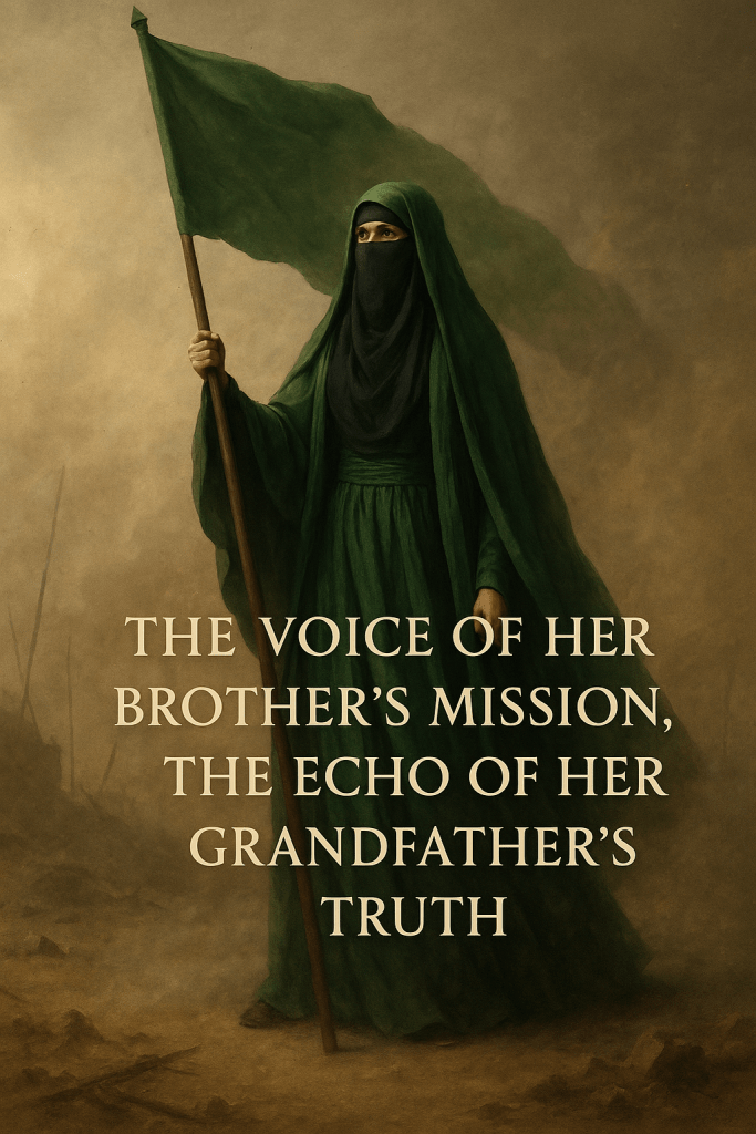She was the fruit of her mother’s dua,. She was nobility, patience, eloquence, and resistance all in one. And I send peace and endless gratitude to her — peace be upon her, her grandfather Muhammad, her mother Fatima, her father Ali, and her brothers Hasan and Husayn.